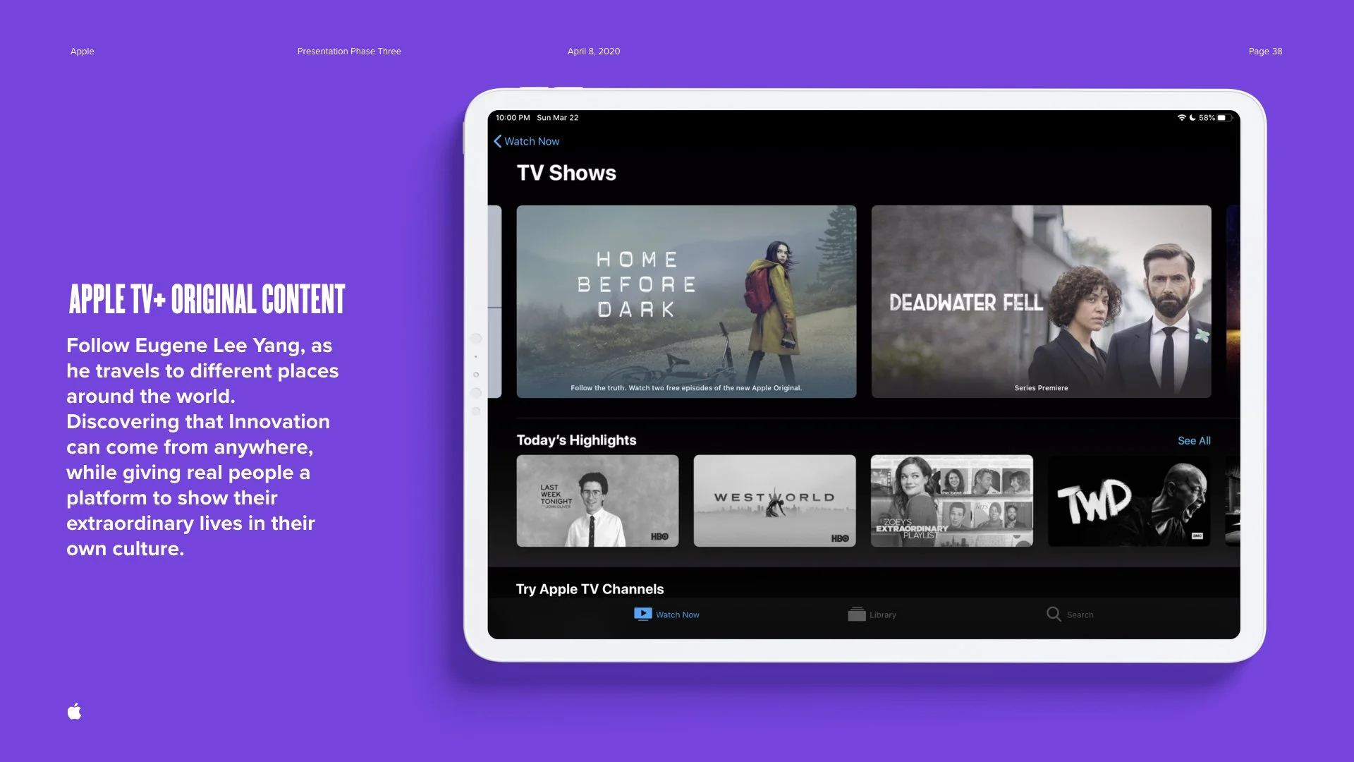 Made during the height of the pandemic so all footage was found from either pre-existing apple commercials or stock